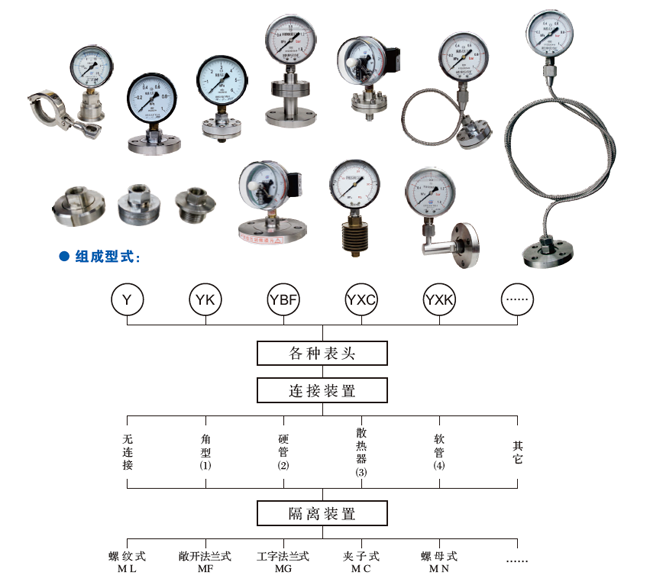 該類儀表以隔片隔離裝置將被測介質(zhì)與壓力表表頭分開,以滿足保護(hù)測量元件和特殊適用場合的測壓需求。廣泛用于石油、化工、醫(yī)藥、食品、造紙、噴涂等行業(yè)測量具有強(qiáng)腐蝕性、高粘度、易結(jié)晶、含有固體顆粒的液體介質(zhì)壓力。